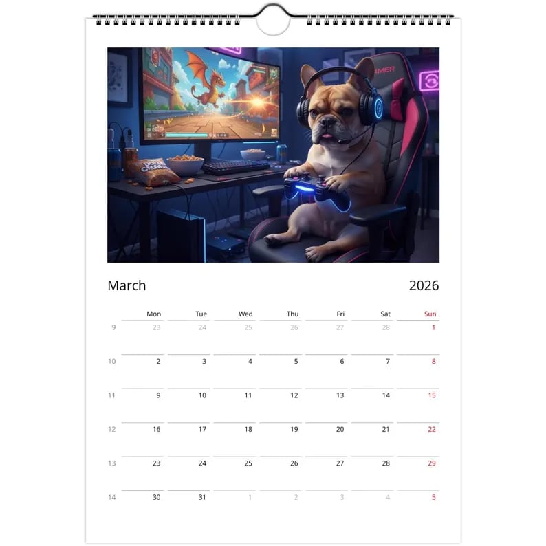 From grumpy mornings ☕ to cozy gaming nights 🎮, this Frenchie calendar features 12 months of expressive pups in hilariously human situations. Get your daily dose of charm!