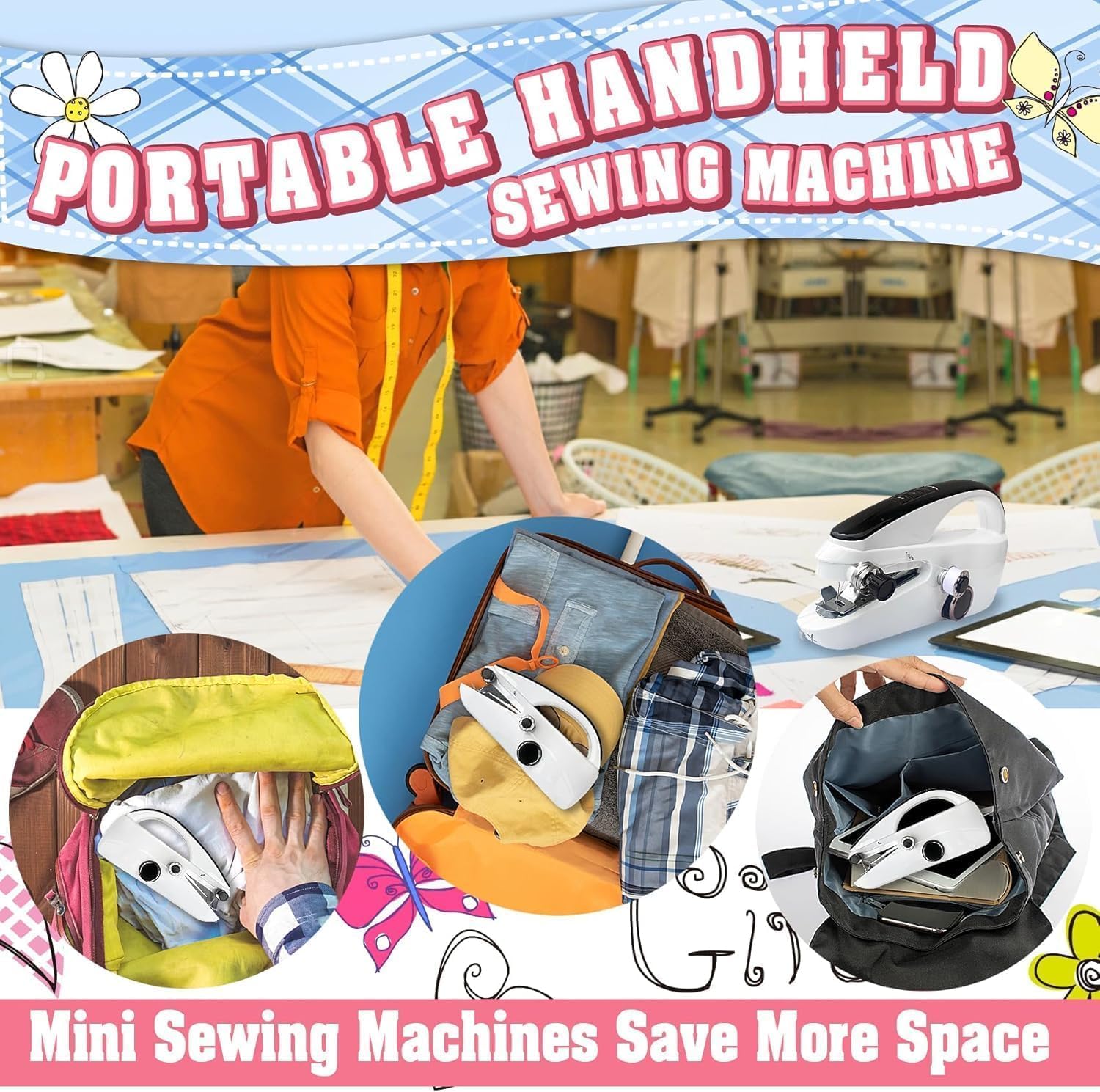 🪡User-Friendly Design: Our portable handheld sewing machine simplifies sewing with its intuitive one-button operation, making it exceptionally user-friendly. Plus, the mini sewing machine handheld is upgraded with new technology, providing higher power and lower noise. It is easy to operate, versatile, lightweight, and durable, and does not take up storage space; this sewing machine is ideal for beginners.