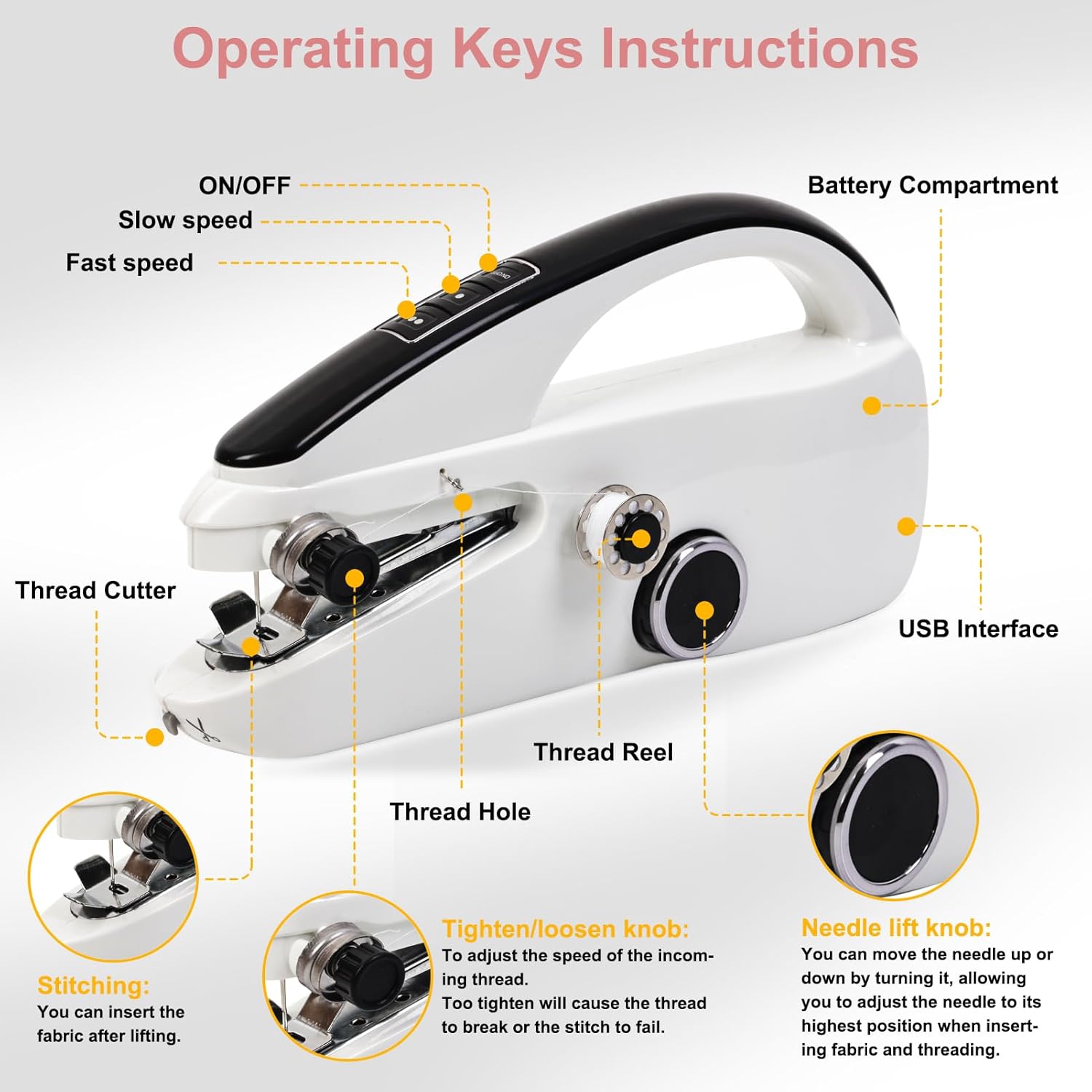 🪡Adjustable Dual Speed: Choose between high-speed sewing up to 375 stitches per minute for fast projects, or a lower speed for precision work on tricky corners. Enjoy the flexibility to tackle any sewing task with ease using this hand stitching machine!