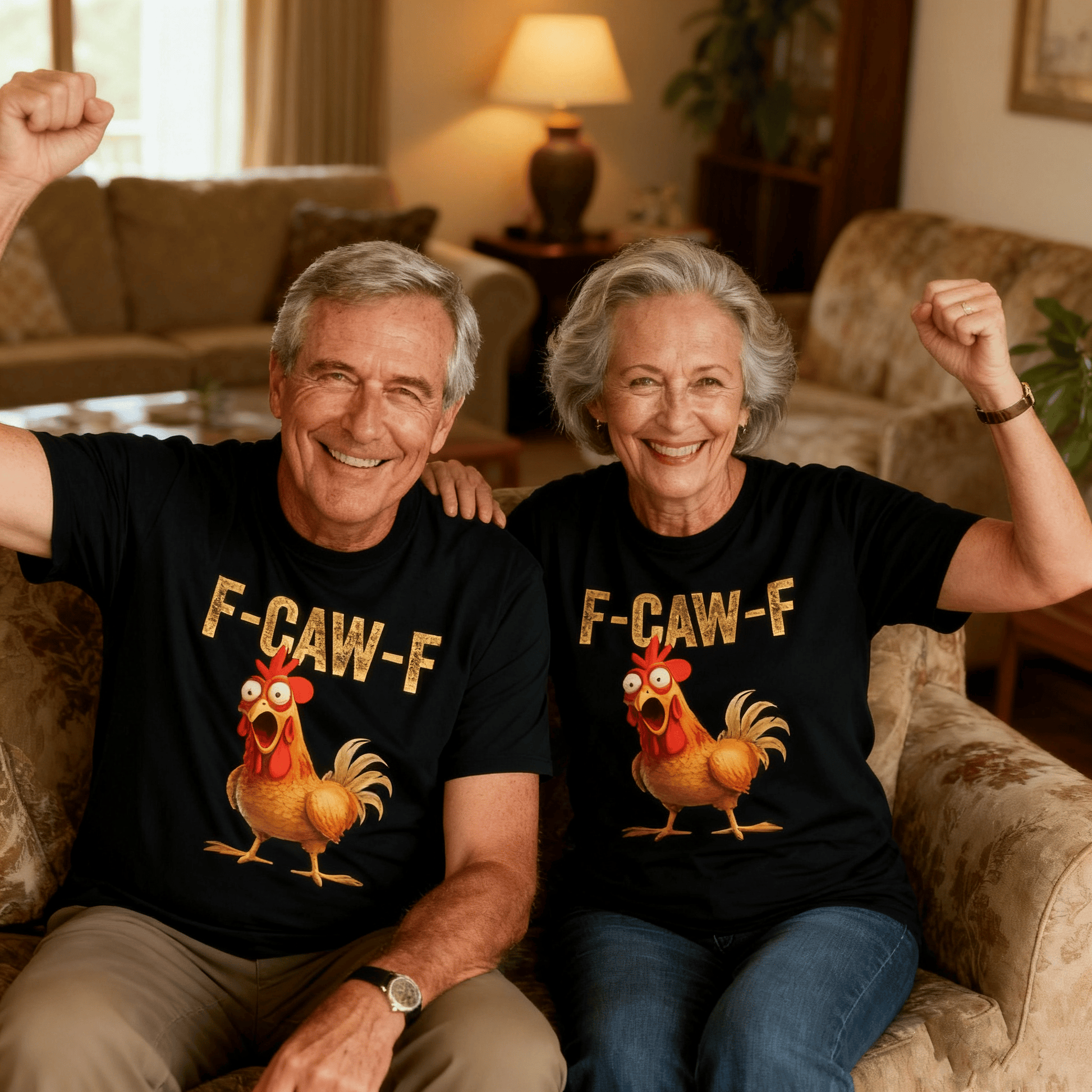 Featuring an exaggerated, funny and brightly - colored rooster pattern with the striking "F - CAW - F" letters, it's easy to stand out in the streets and show your personality and fun from ordinary outfits.