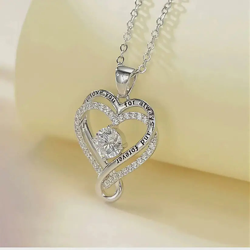 - 1*I Love You Forever And Always Engraved Heart Necklace