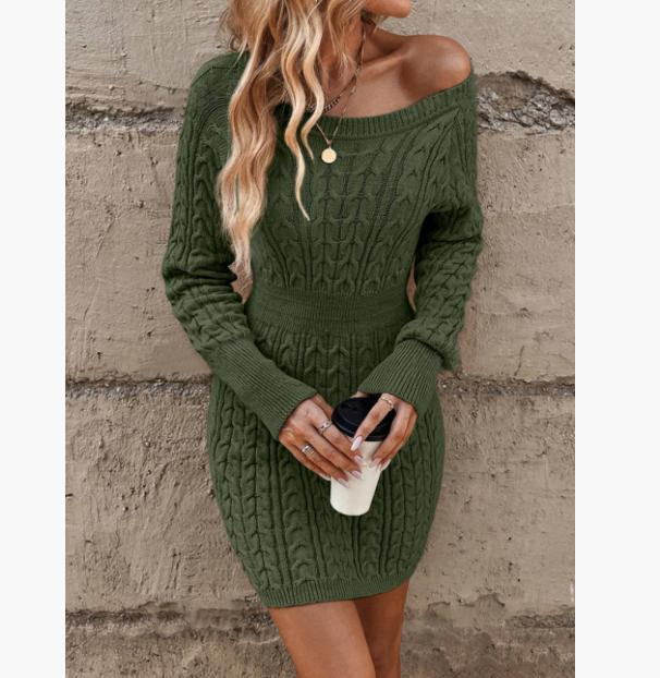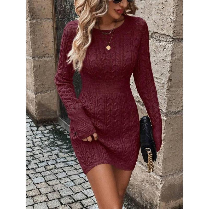 ⏰💃Last Day 50% OFF❄️🖤Women's Winter Plain Round Neck Cable Knit Bodycon Sweater Dress