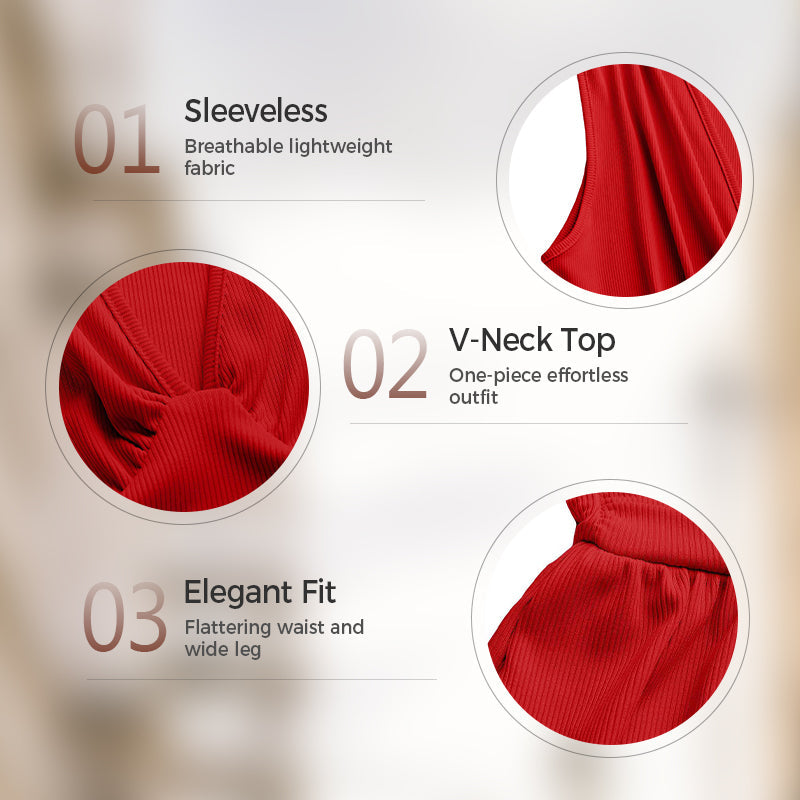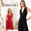 FLATTERING SILHOUETTE – Designed with a gathered waist and wide-leg cut, this jumpsuit shapes the figure naturally while offering a flowing drape. The deep V-neckline enhances elegance and creates a versatile piece for day or evening wear.