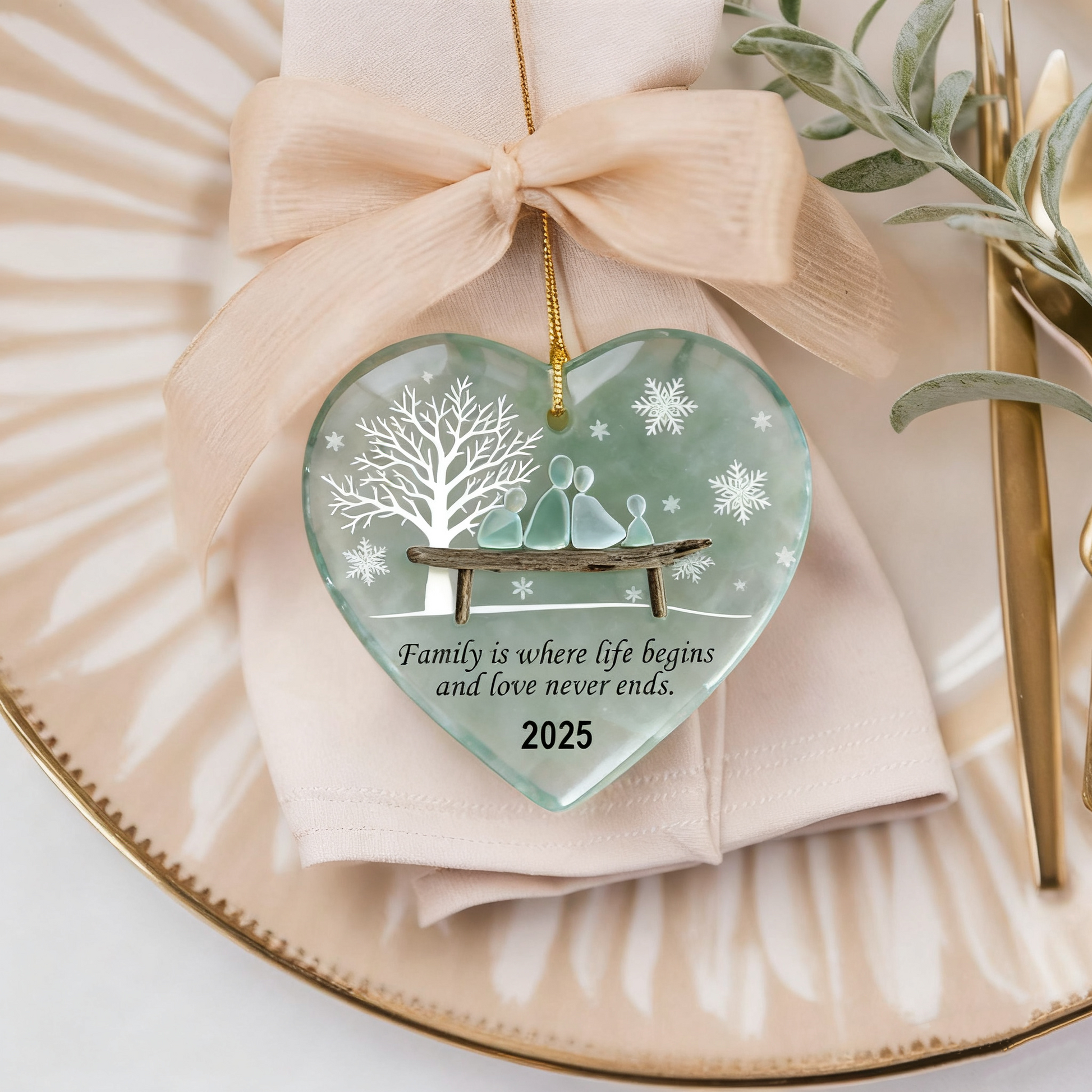🎉Celebrate the warmth of togetherness with this heart-shaped sea glass family ornament!