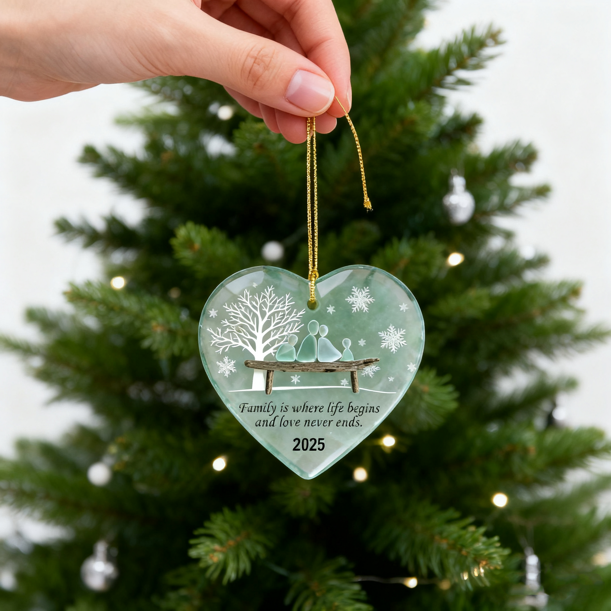 🔥Last Day: BUY 2 GET 1 FREE 🌊❄️Handmade Heart-shaped Sea Glass Family Ornament