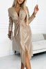 🎅Christmas Sale 60% OFF🎁Women V-neck Pleated Sequined Slit Elegant Temperament Evening Party Dress