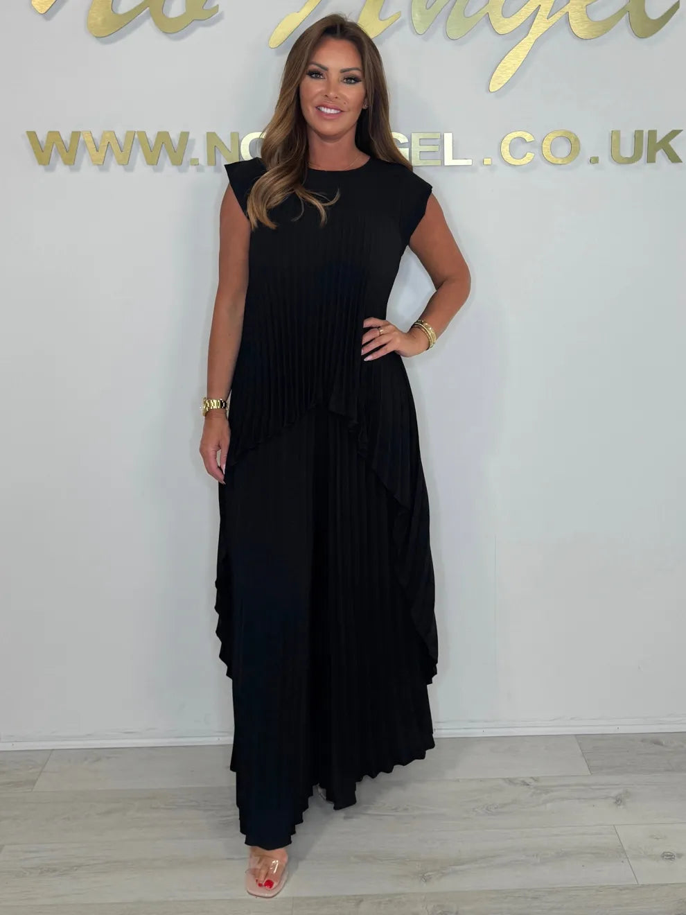 ⏰Hot Sale 50% OFF💕Laney Pleated Short Sleeve Irregular Midi Top and Elastic Waist Wide Leg Pants Set