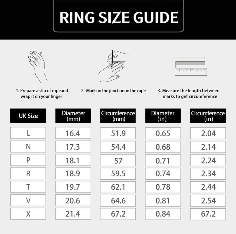 - Sizes: Available in multiple UK ring sizes for a perfect fit
