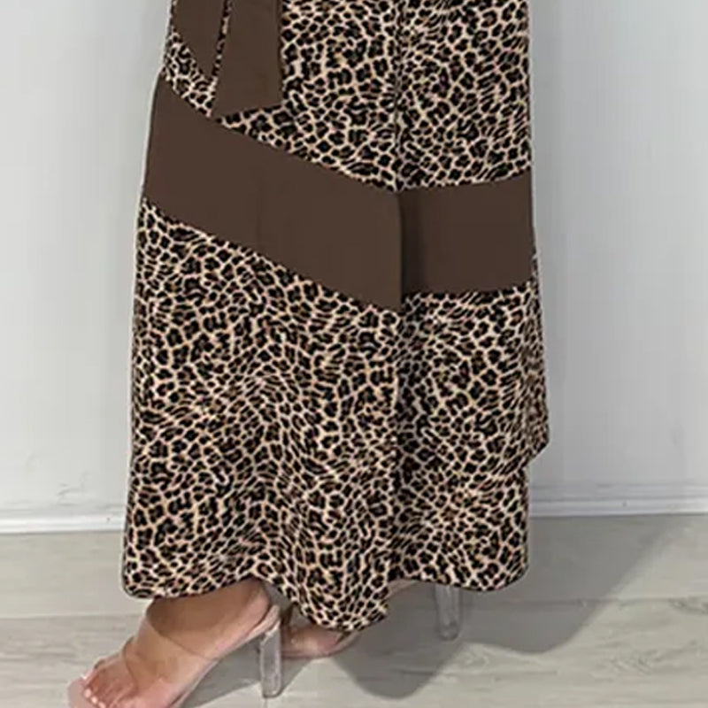 Women's Leopard Print Tie Neck Sleeveless Long Dresses