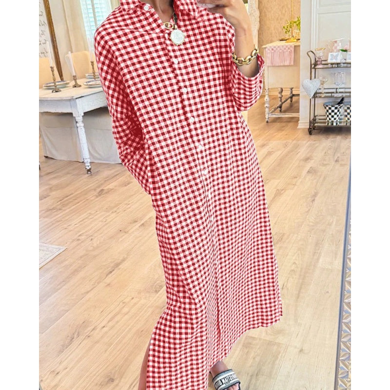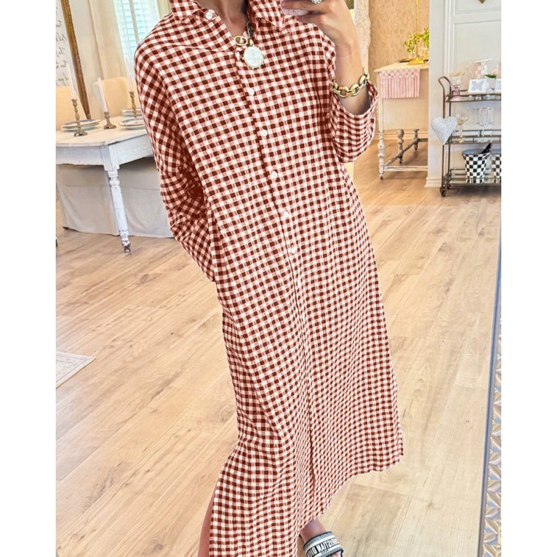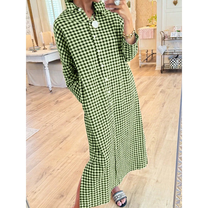 Women’s Loose Fit Plaid Long Shirt Dress